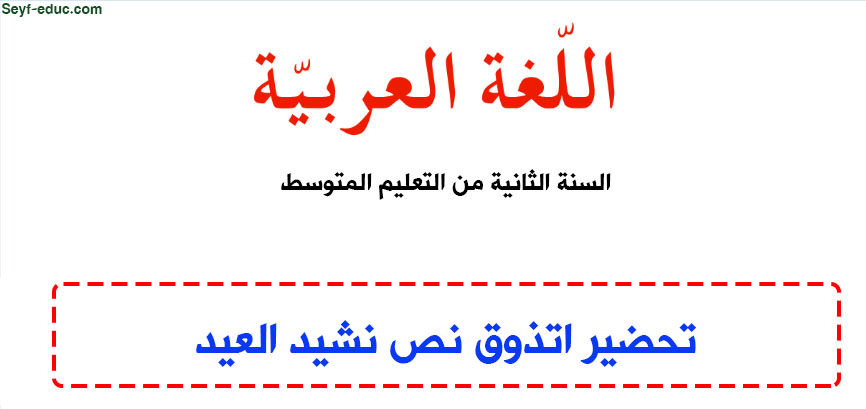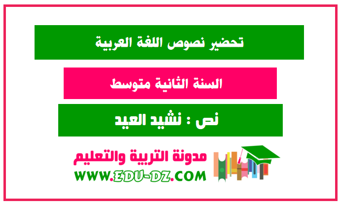 تحضير نص نشيد العيد للسنة الثانية متوسط الجيل الثاني