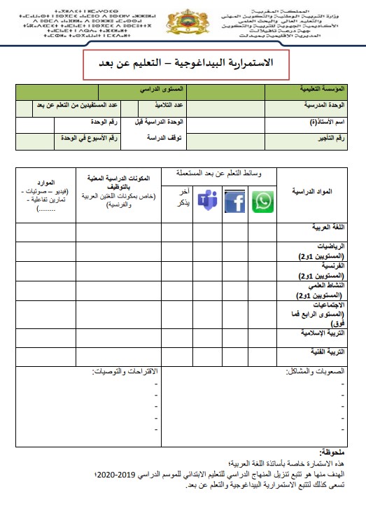 نموذج وثيقة الاستمرارية البيداغوجية التعليم عن بعد موقع الأساتذة والتلاميذ للتعليم عن بعد