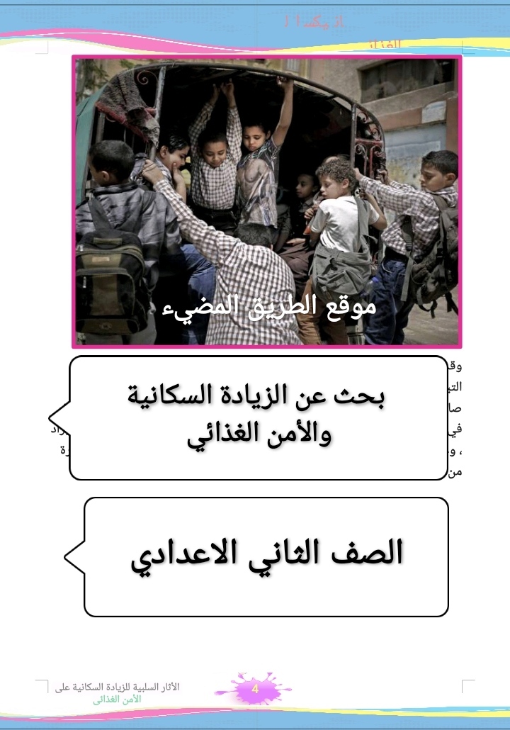 مشروع بحث عن الزيادة السكانية والامن الغذائي للصف الثاني الاعدادي ملف وورد