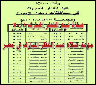 متى موعد صلاة العيد 2018 فى مصر توقيت صلاة عيد الفطر جميع المحافظات