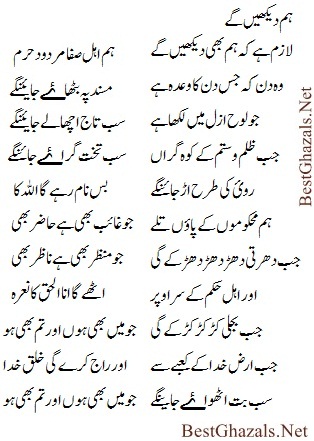Best Ghazals And Nazms Urdu Poetry In Roman English Urdu And Hindi Scripts Faiz Ahmad Faiz Famous Revolutionary Verse Lazim Hai Ki Ham Bhi Dekhenge
