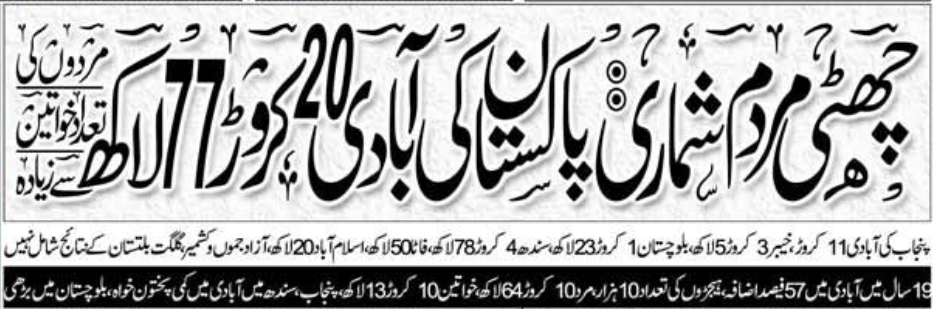 Provisional Summary Results Of 6th Population And Housing Census 2017 Pakistan Bureau Of Statistics